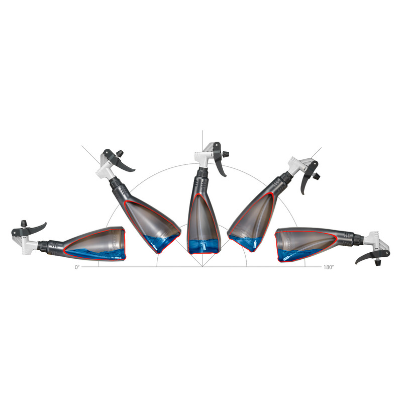 Flexible hose allows almost complete emptying at a working angle of 0°-180°