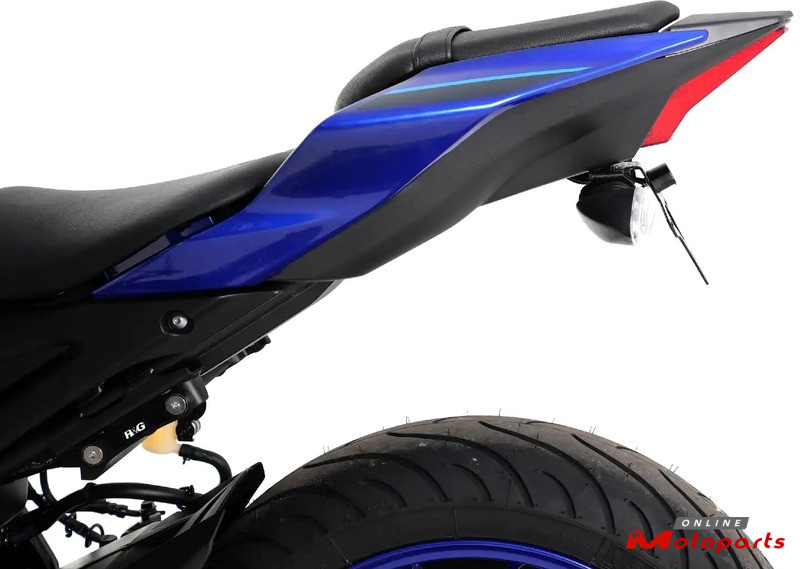 Radically tidy up the Yamaha YZF-R125 '23 rear end with this Tail Tidy. This Tail Tidy kit has everything you need to replace the obtrusive OEM license plate holder with a sleek, modern unit. Save almost half the weight of the original tail unit with the OEM unit weighing 780g and the R&G Tail Tidy coming in at just 400g.