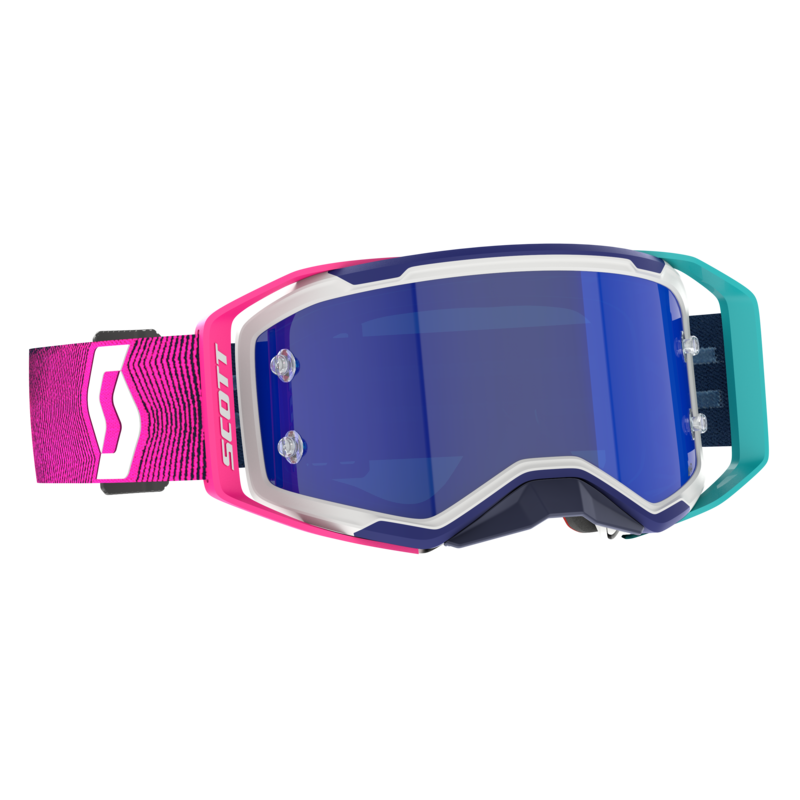The SCOTT Prospect 2.0 AMP Chrome is the second generation of SCOTT’s flagship motocross goggle. It features SCOTT’s ground-breaking Quick Lens Release System, which allows users to unlock the four lens locking pins instantly for a quick and easy lens change, without compromising on the industry-leading safety ensured by the SCOTT Lens Lock System. The AMP Chrome model comes equipped as standard with SCOTT’s Amplifier lens technology, which not only defends but also enhances your vision when riding. These lenses are injection molded to provide improved definition and optical clarity, allowing you to see contours and transitions in the dirt like never before! With a fresh and modern design, as well as other top performance features such as NoSweat face foam, a maximum field of vision, articulating outriggers, and more, the SCOTT Prospect 2.0 AMP Chrome goggle has been fully engineered to defend your vision and give you the competitive edge when you line up at the gate on race day.