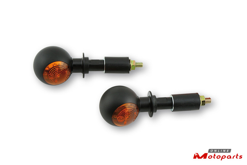 SHIN YO Bulls Eye Bulb Bar End Indicator Body Black / Lens Orange (Pair), Front