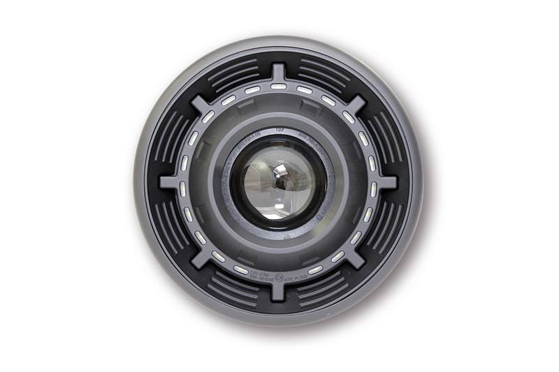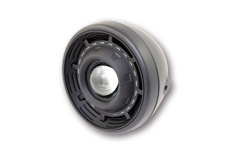 SHIN YO main headlamp CYCLOPS Innovative ellipsoid main headlamp with electronic diaphragm for low beam and high beam. High-quality black matt metal housing with M8 side mounting. This headlight with a LED position light ring lets your vehicle shine in a new light, E-examined.