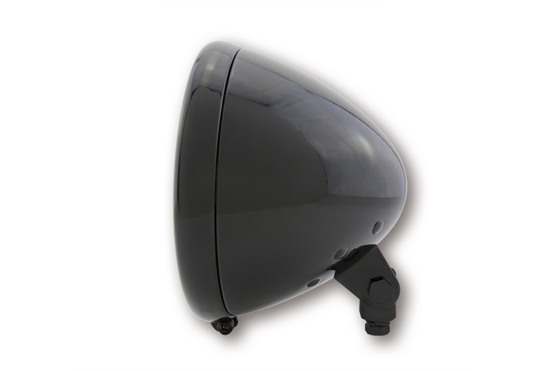 SHIN YO 6 1/2 inch headlight El Paso, chRome or black selectable, E-marked. The popular main headlamp with a rear pointed spherical shape and its classic appearance makes the headlamp the perfect part for all conversion projects. The tested headlight is also robust and easy to install.