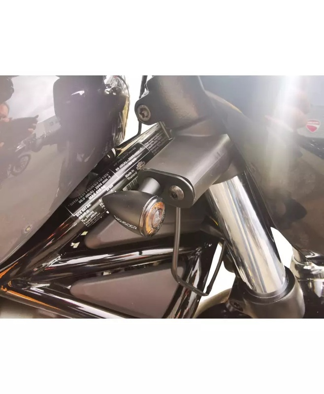 The kit includes a pair of mounts for left and right front turn signals, they will match the shape of your original turn signals. Perfect fit for your Harley-Davidson Nightster. (Turn signals are not included).