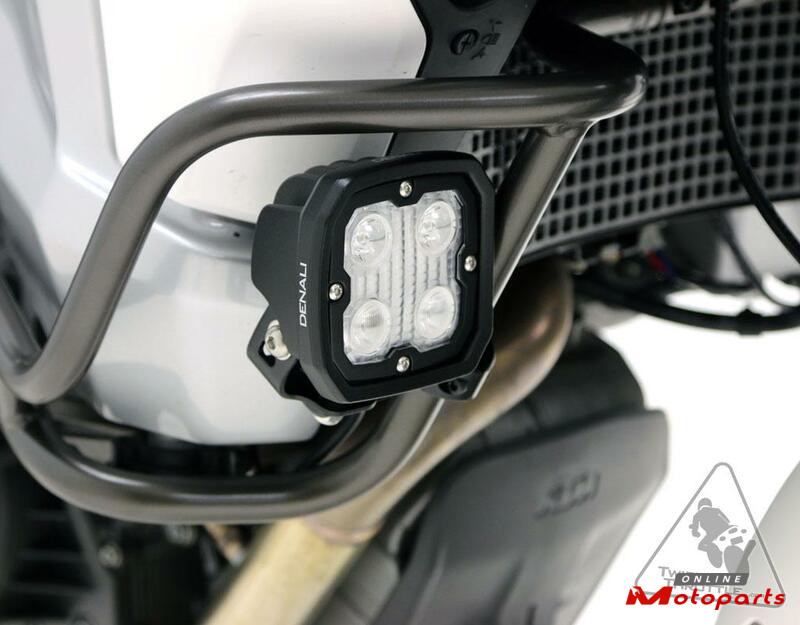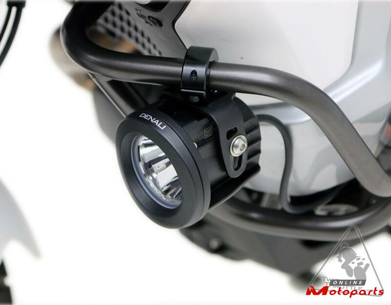This DENALI Motorcycle Engine Guard/Crash Bar Light Mount Kit allows fitment of any DENALI LED Lights to engine guards, crash bars, or any tube 21mm-29mm in diameter. These light mounts have a unique octagonal inner profile that allow the clamps to securely grip a wide range of tube diameters and include an optional, fully rotatable mounting shelf to create a super versatile and robust light mounting solution.