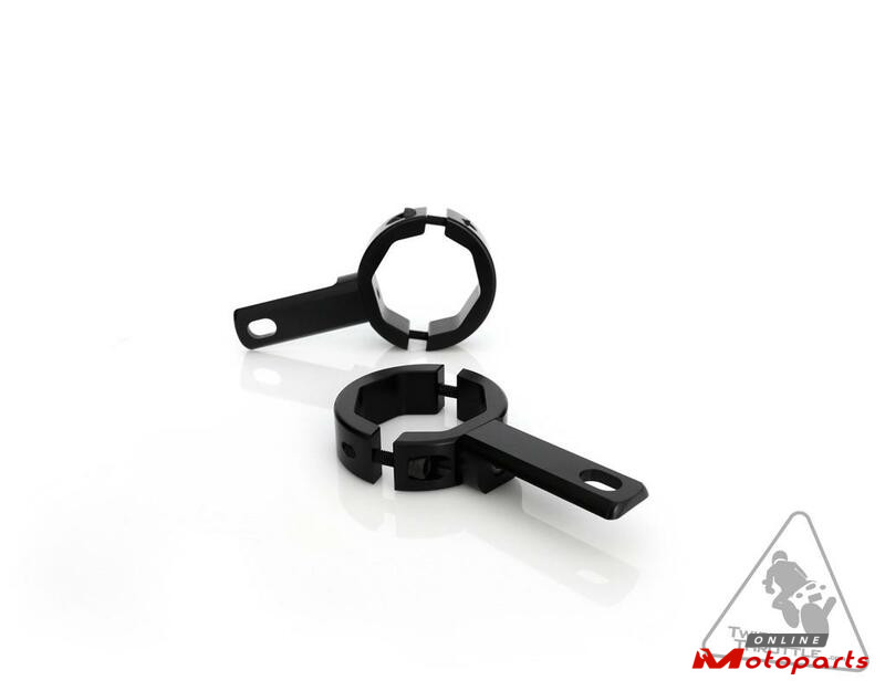 This DENALI Fork Tube Light Mount Kit allows fitment of any DENALI LED Light Kit to conventional forks, or any tube 39mm - 49mm in diameter. These light mounts have a unique octagonal inner profile that allow the clamps to securely grip a wide range of tube diameters and include an optional, fully rotatable mounting shelf to create a super versatile and robust light mounting solution.