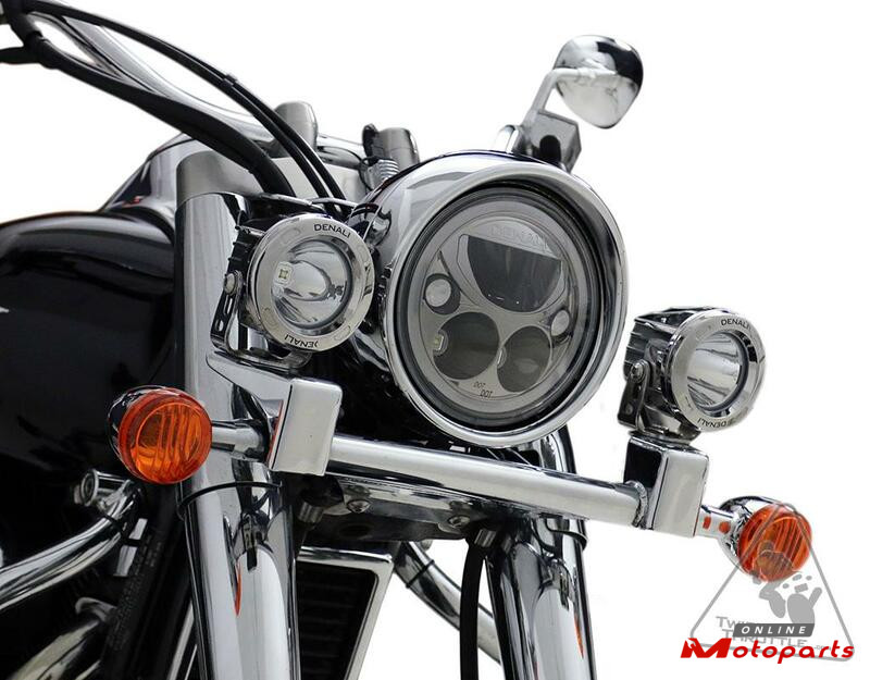 The DENALI M7 Headlight Module Adapter Kit s allows fitment of the DENALI M7 LED Headlight to the Suzuki Boulevard C50, C90, & Volusia. Laser cut steel bracketry ensures a precision fit and is powder coated black for corrosion resistance. Drop this headlight module inside your existing headlight housing to throw a blazing beam of light three times further than your stock halogen headlight and twice as far as a stock LED headlight. The unique design and black chrome finish of the optics will give your bike that modern custom look while also increasing your visibility to oncoming traffic even during daylight.