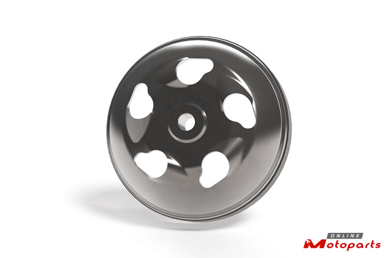 With high-performance racing engines, the clutch system is also subject to extreme speed loads. The centrifugal forces increase in square with the speed. The reinforced cooling fin ring counteracts this load and protects the bell against failure.