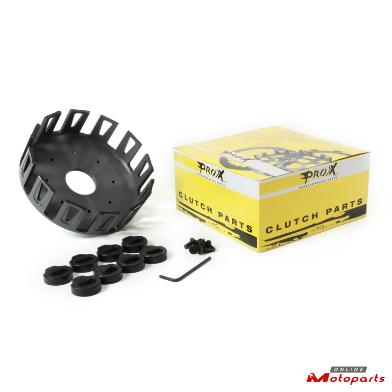 ProX Clutch Baskets are precision machined from heat treated aircraft Billet 7075-T6 aluminium alloy to O.E. precision standards. Sophisticated hard-anodising guarantees extended life under severest racing conditions. Each kit comes with the necessary hardware to make installation a snap.
