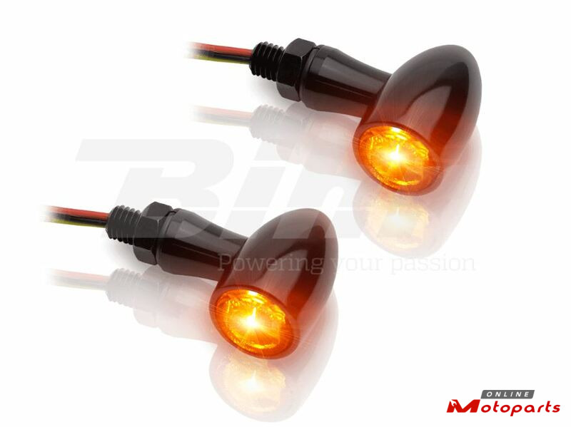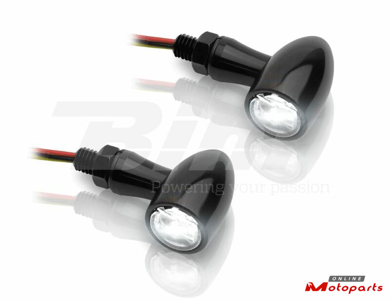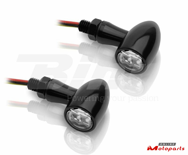 A kit of round LED Indicators brings brightness and sharpness to further improve your visibility. Made of Full Black coated aluminium, finished to higher standards to meet with durability of its unique and stylish look. Homologated, these will give radiance to your Clubman / Café Racer, type BMW R Nine T, Ducati Scrambler, Triumph Scrambler, Thruxton, Bonneville, Kawasaki W, Moto Guzzi V7, Yamaha XSR et Bolt Estrella, Moto Guzzi V7, Yamaha XSR.