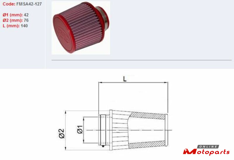 | Product | BMC FILTER AIR SLEEVE Ø42 |