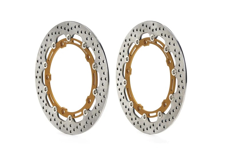 SuperSport discs are available with a braking surface width of 34 mm and thickness increased to 5,5 mm; they are interchangeable with the original discs without requiring any modifications. These fully floating discs are made from heat-treated steel capable of withstanding extreme thermo-mechanical stress, with an aluminium alloy bell machined from the billet.
