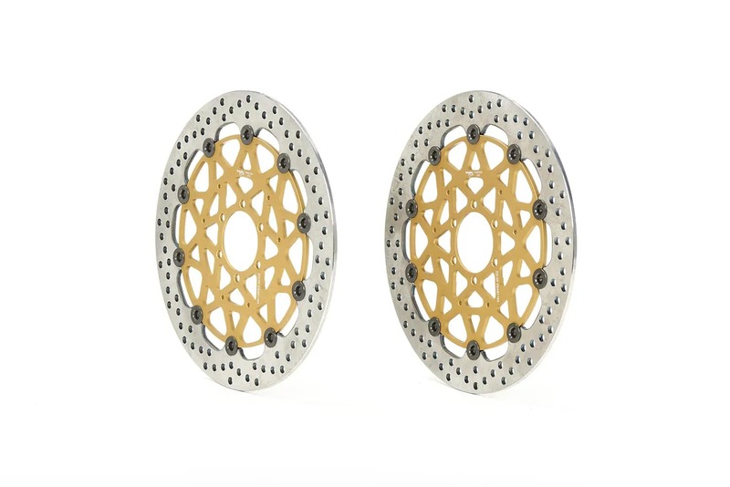 SuperSport discs are available with a braking surface width of 34 mm and thickness increased to 5,5 mm; they are interchangeable with the original discs without requiring any modifications. These fully floating discs are made from heat-treated steel capable of withstanding extreme thermo-mechanical stress, with an aluminium alloy bell machined from the billet.