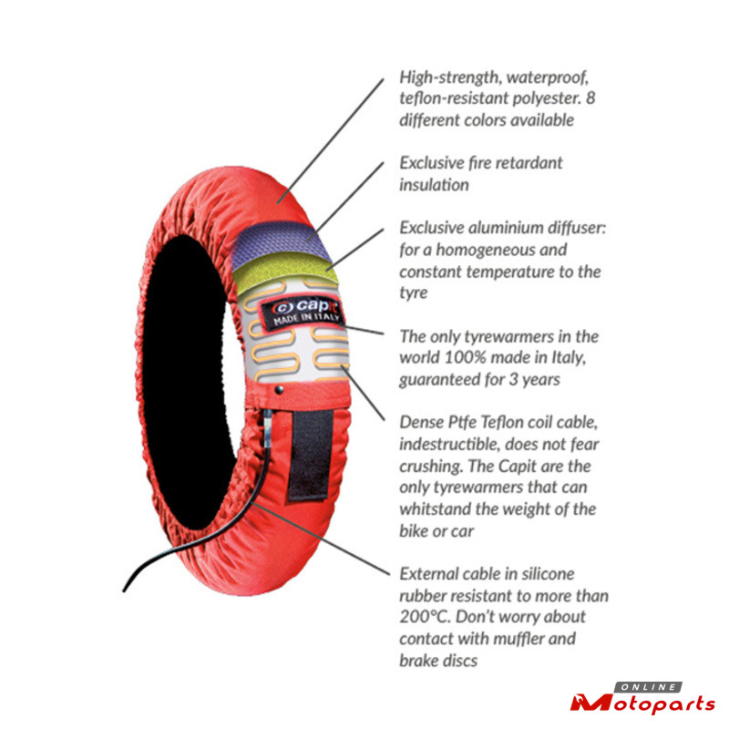 Capit’s Suprema Spina tyrewarmers for motorcycles are simple in shape, but big in the task: versatile, very practical and efficient, the best-selling in the world thanks to the patented Capit technology without thermostat.