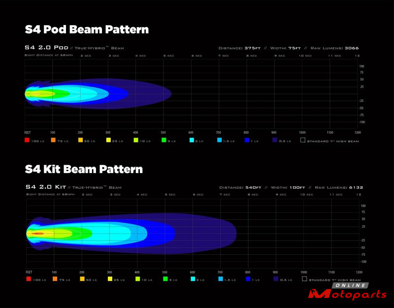The S4 is the first light DENALI developed as part of the new S-Series product line. At more than 3000 lumens and economically priced, the S4 provides more light per dollar than just about anything else on the market. In fact, the S4 features the same high intensity LEDs as the D-Series lights, but utilize a single-piece optic and sealed beam construction to reduce the number of components. The DENALI S4's fixed lens features two flood optics and two spot optics to create the ultimate hybrid beam pattern; a super wide close-range flood and a piercing spot beam in one housing.