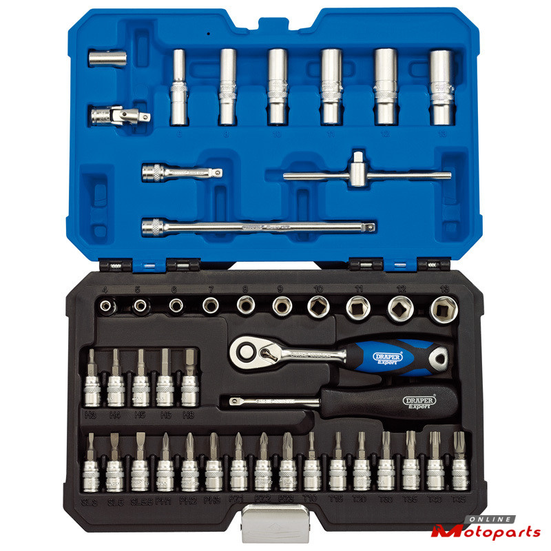 1/4â sockets, drive ratchet and accessories set (44 pieces).Â
