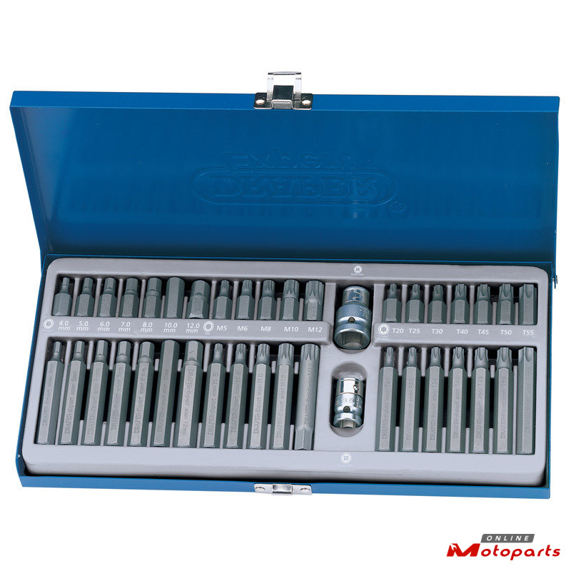 Box of 40 bits in Expert Quality, insert bits manufactured from S2 silicon steel, hardened and tempered with shot blasted finish. Bit holders made from chrome vanadium steel hardened, tempered and chrome plated. Spare bits are available. Packed in steel case and display carton.