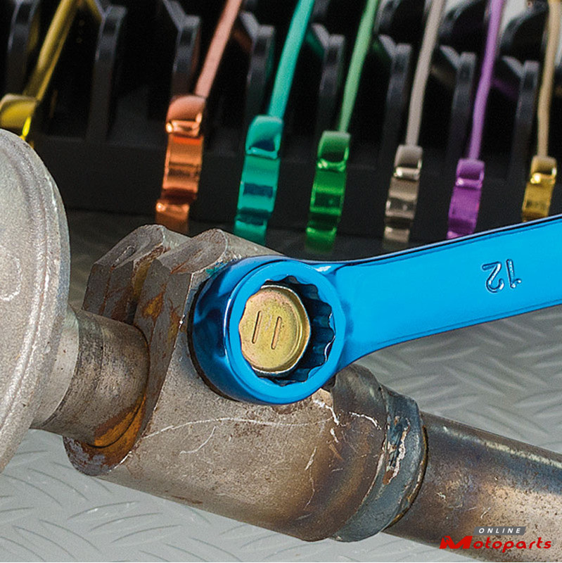 Coloured combination wrenches forged in chrome vanadium steel.