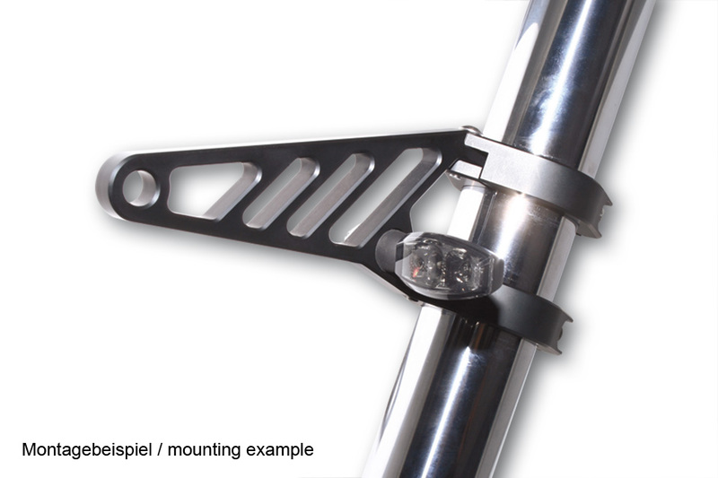 The aluminium set contains 4 clamps for mounting on the stanchions as well as 2 lamp holders and reducing strips. The diameter can be reduced with the enclosed insert strips. The holders can be adjusted to the width of the headlight by turning the clamps. They are equipped with a mounting for mounting indicators up to an M10 threaded bolt. The perfect part for your conversion project, available in chrome or black. Select the desired size.
