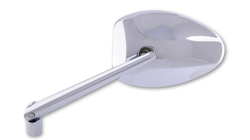 Handlebar mirror with an aluminum head and adjustable stem. Thanks to the use of a second joint on the handle, there are additional adjustment possibilities for your safety. Including extra adapter M10 x 1,25 mm with left hand thread for Yamaha. Can be used for left and right side, E-approved.