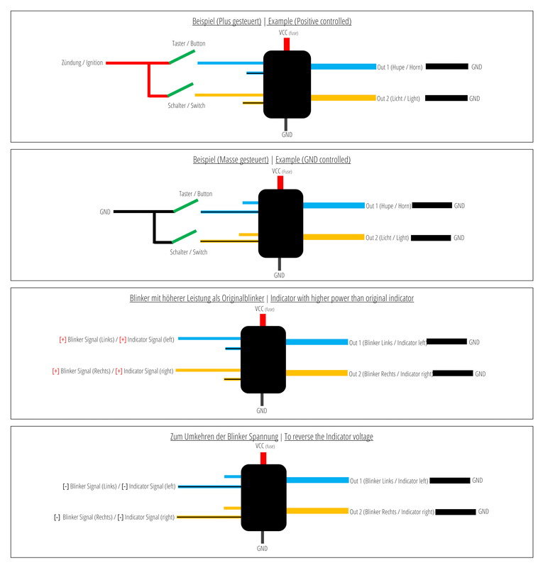 With the two channels, this relay can control two independent circuits and provide unwanted damage to push buttons due to high current. Compatible with 6V to 14V systems with a max load of 40W. This relay can also convert pulsing ground turn signal inputs into positive signals, which is useful for Indian Motorcycles.