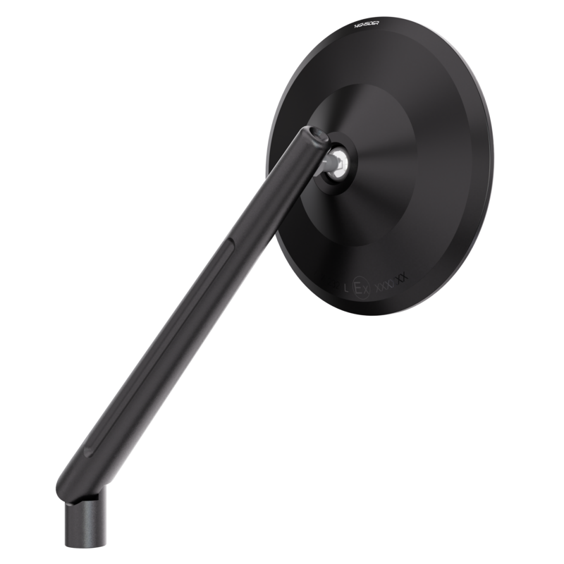 The HIGHSIDER pro MONTANA-BLAST XL handlebar mirror, impresses with its timeless and classic design with a fine bead blasted surface finish to match the stem. The mirror head here is paired with a 25mm extended mirror arm with new design accents incorporated into the mirror arm. The extended mirror arm thus offers the driver a better view to the rear and increases ergonomics when driving.