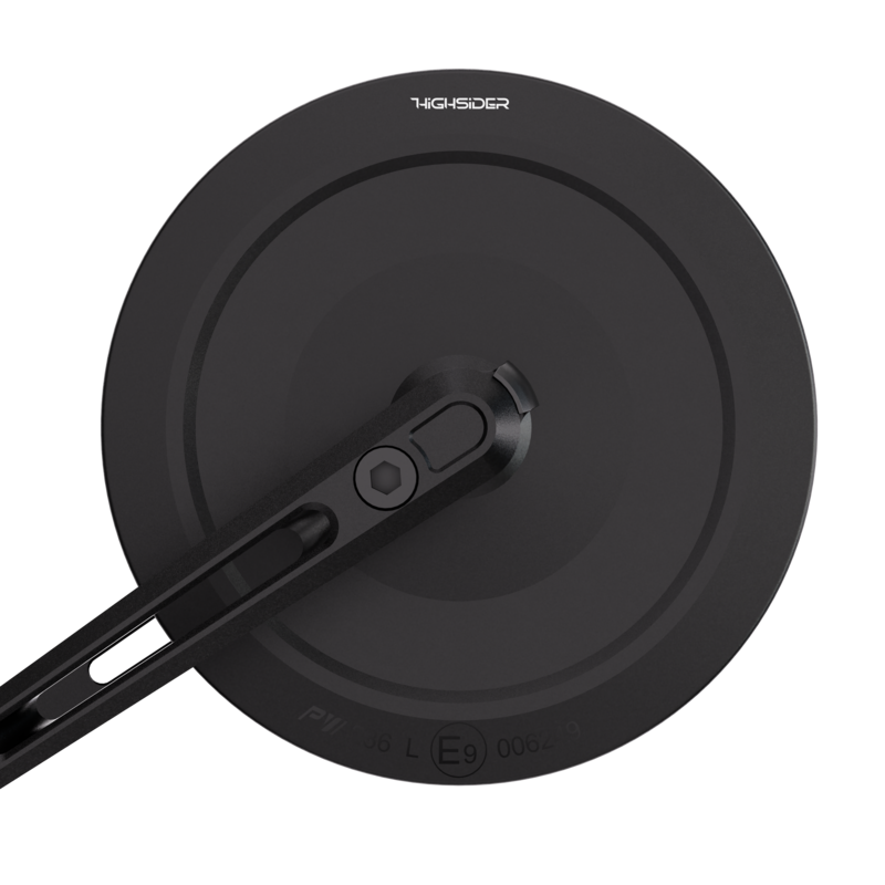 The HIGHSIDER pro MONTANA-SLIM with its typical but very modern shape has a very elegant and sporty look due to the silk matt surface and the very slim design and fits optically to many bikes. The rear view mirror will bring your bike into a new optical league.
