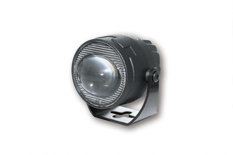 Small, powerful low beam headlight with 2 power LEDs (8 watts each) in a matt black aluminium housing with round lens, enclosed in a sturdy steel holder. The LED technology and the insert used produce a symmetrical, bright light for optimum perception of bikers by other road users.