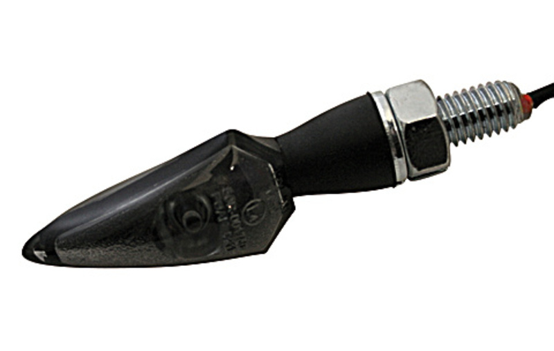 Power LED Indicator in a black aluminum housing with rubber handle and tinted glass, E-approved.