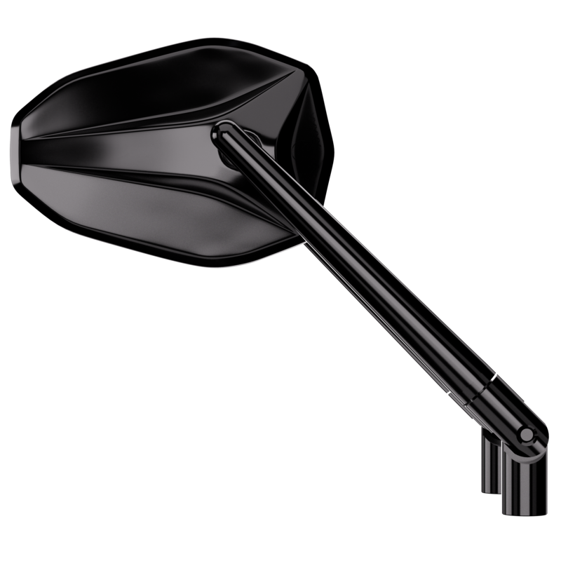 Elegant fairing mirror with a black anodized aluminum head and adjustable and rotatable stem. Thanks to the use of a second joint on the handle, there are additional adjustment possibilities for your safety. Please order additional adapter set, E-approved.