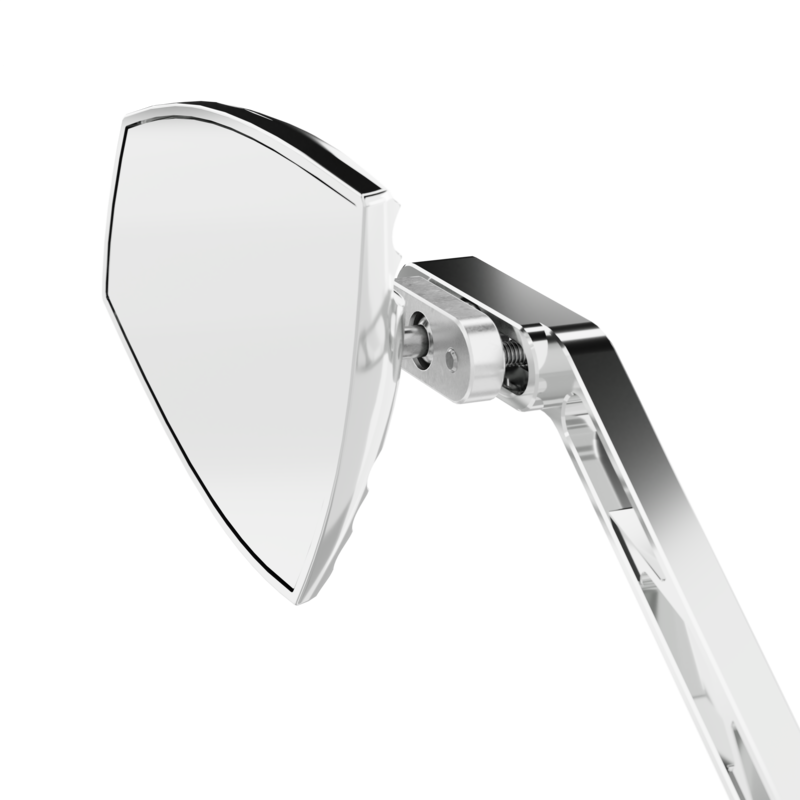 The HIGHSIDER pro Wave mirrors visually complement any motorcycle model in the colors silver, black, red, gold or chrome. Small colored accents between the mirror head and arm add color to your machine. The asymmetrical shape and the CNC milled lines of the case create both a modern and a classic look. The mirror head is supported by an aluminium arm, which is connected classically by M10x1.25 adapter is screwed into the handlebar fitting.