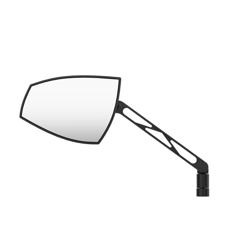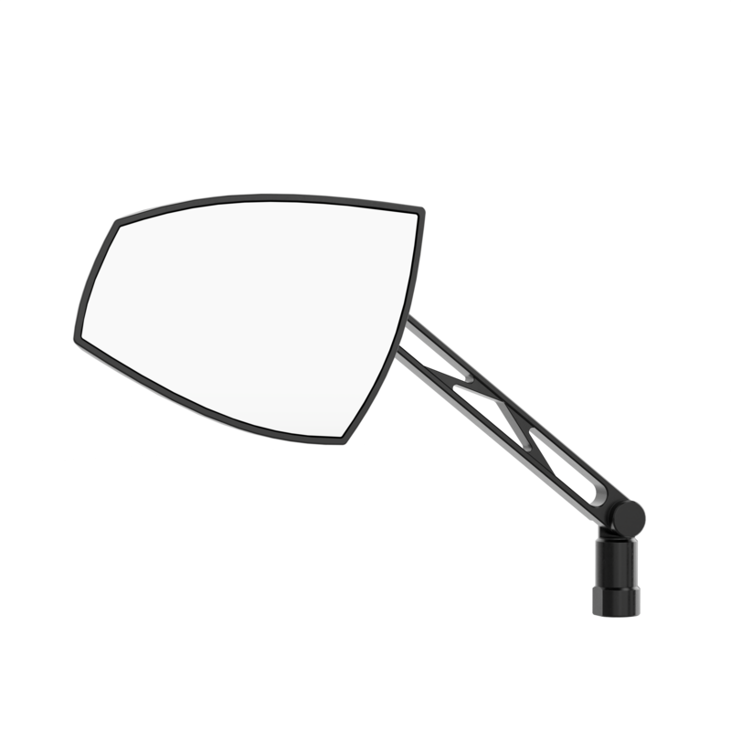 The HIGHSIDER pro Wave mirrors visually complement any motorcycle model in the colors silver, black, red, gold or chrome. Small colored accents between the mirror head and arm add color to your machine. The asymmetrical shape and the CNC milled lines of the case create both a modern and a classic look. The mirror head is supported by an aluminium arm, which is connected classically by M10x1.25 adapter is screwed into the handlebar fitting.