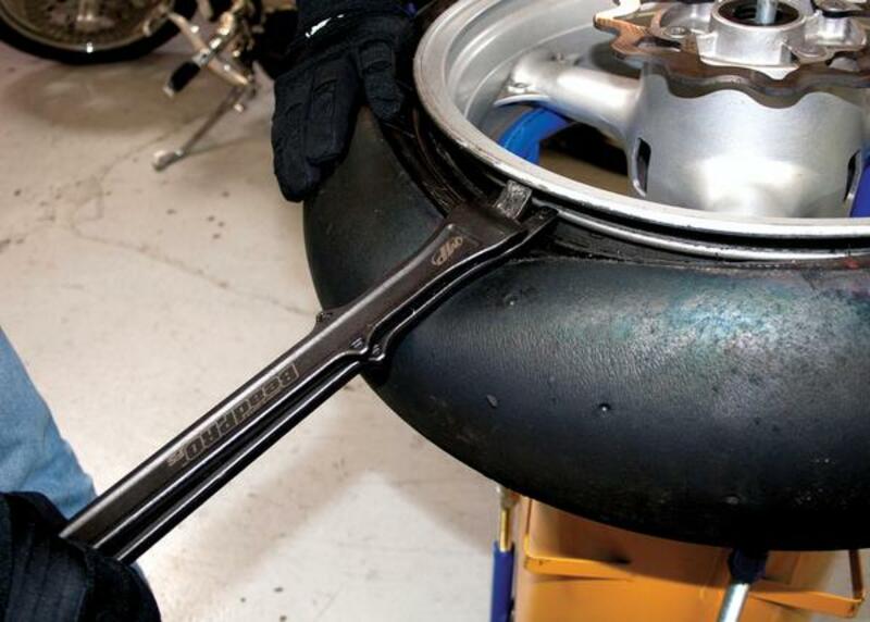 Breaks the tire bead on most street and off road motorcycles and ATVs, integrated tire spoons for tire removal and installation.