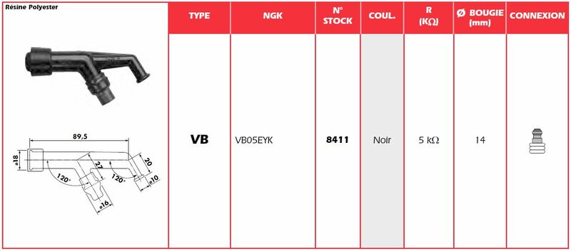 | Product | NGK SPARK PLUG CAP VB05EYK |