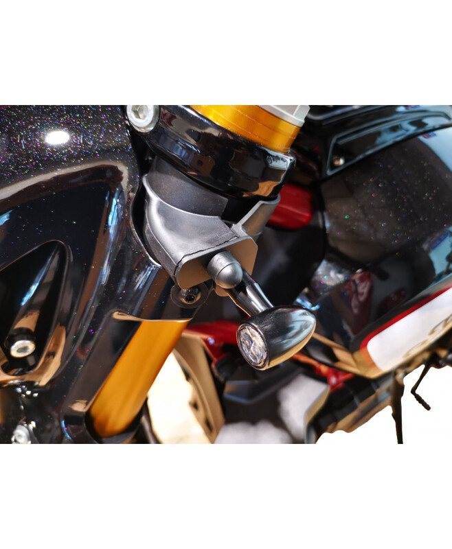 The indicators brackets for Indian FTR 1200 are machined in the mass. Made of 2 millimeters thick steel, they are coated with a matt black epoxy paint. The hole diameter is 8.5 millimeters and will allow you to put all styles of rod turn signals.