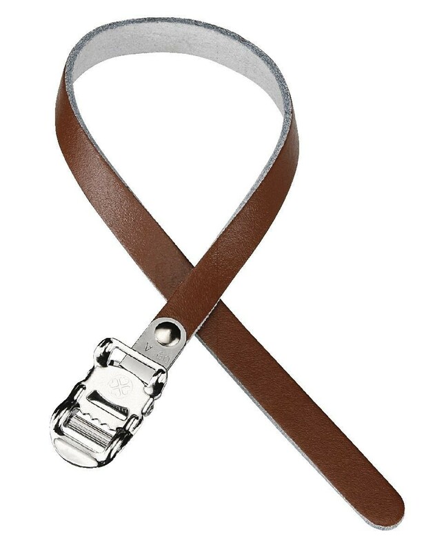 Leather straps for bicycle toeclips. For CITY / VINTAGE / FIXIE bikes.W/Quick release fastening. Steel. To use on toeclips REF 35515, 35517, and as spare part on REF 35511 y 35509. Replacement buckel available, see REF 35518.Heavy-duty. (Includes 2 units). Size: 13 x 400 mm / Weight: 60 gr/pair