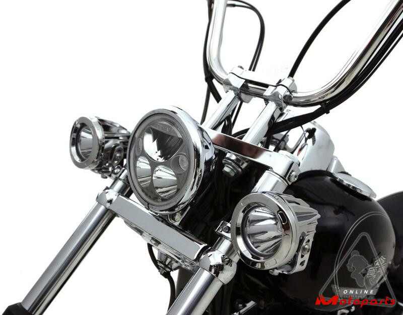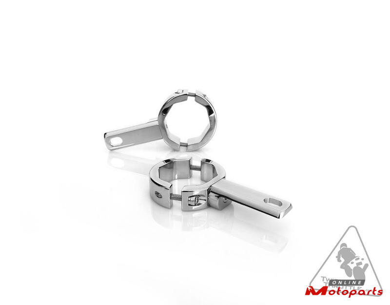 These clamps are intended for motorcycles with conventional forks that have exposed upper fork tubes, like many cruisers and standard motorcycles. The clamps allow the lights to be positioned on each side of the headlight, giving that classic cruiser styling, without a bulky and unsightly light mounting bar.